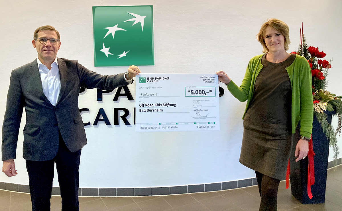 WEIHNACHTSSPENDE VON BNP PARIBAS CARDIF GEHT AN DIE OFF ROAD KIDS STIFTUNG